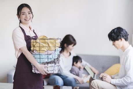 部屋全体の掃除機がけや整理整頓、キッチン・トイレ・お風呂・洗面所などのお掃除や庭のお手入れ、洗濯、アイロンがけなど、お客様からのご依頼によってサービス内容はさまざま。